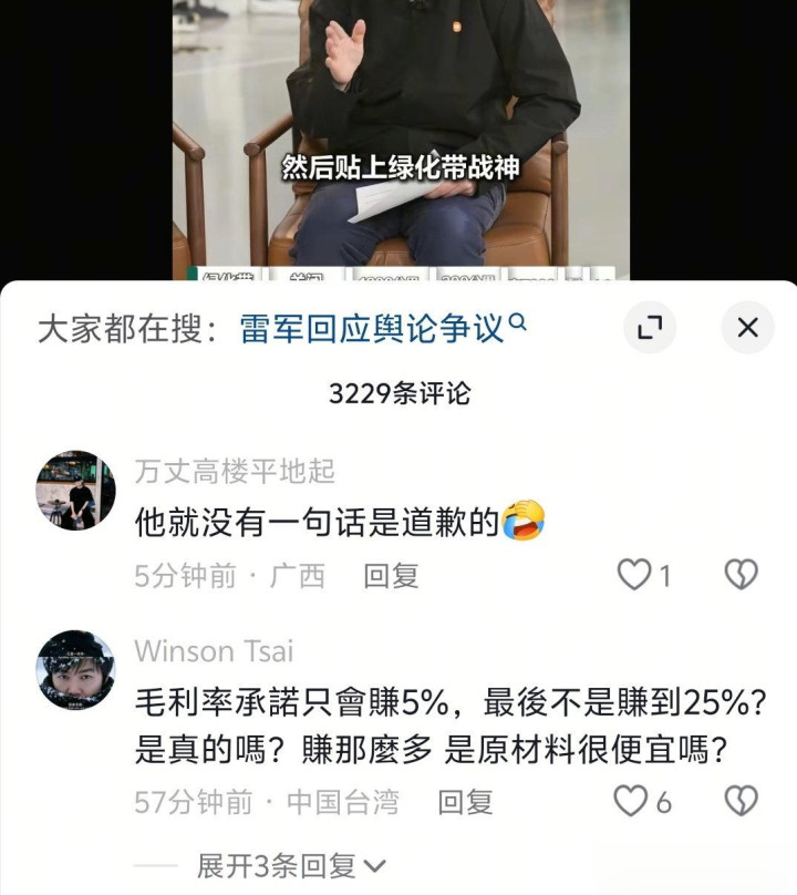 但雷军在直播中的沟通姿态却完全偏离了“责任担当”的核心。他多次强调“被尬黑到有心理阴影”、“不敢敞开讲话”,将舆论争议简单归咎于“水军抹黑”“为流量故意找茬”,甚至因“不让农民卖小米”的传言动怒,将自身置于“舆论受害者”的位置。这种叙事逻辑与公众期待的“企业领导者主动担责”形象形成强烈反差。